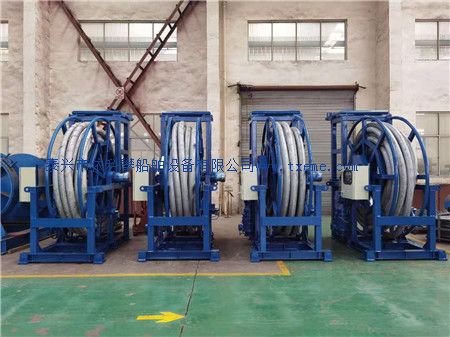 軟管絞車供陸地平臺抽水用,用絞車將潛水泵組放到水下,經由過程潛水泵經軟管將海水